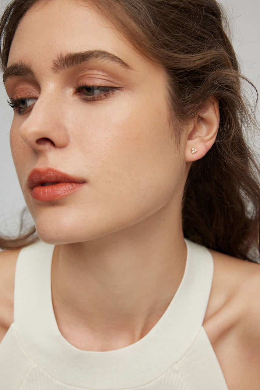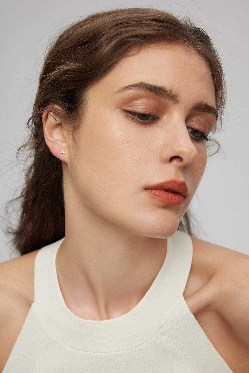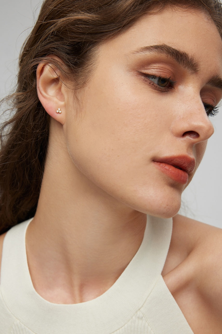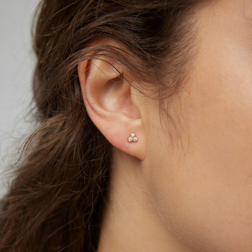 Featuring three dainty gemstones, these delicate stud earrings exude subtle elegance. Made with sterling silver and plated in 18k gold, they’re perfect for everyday wear.